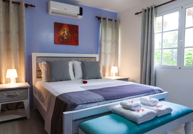 Florisel is a small apartment complex in front of Los Corales beach. We offer 1 and 2 bedroom apartments in a garden area with direct access to the crystal clear waters of Playa Los Corales in Bávaro-Punta Cana, where our clients have deckchairs and cane umbrellas at their disposal. Located in a unique enclave, close to Restaurants, Bars, Cafes, Bakery, Shops, Supermarkets, Pharmacy and more, 5/10 minutes walking. All the apartments are equipped to make your stay comfortable and make you feel at home.